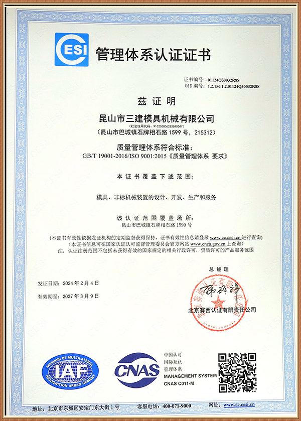昆山市三建模具機械有限公司 創(chuàng)建于1996年,是一家研發(fā)生產(chǎn)電冰箱模具(電冰箱門、箱真空成型吸塑模、沖孔切邊模、 發(fā)泡內(nèi)外夾具、沖壓模具)產(chǎn)品并提供成套專業(yè)化控制解決方案的企業(yè)。 公司位于昆山市經(jīng)濟技術(shù)開發(fā)區(qū)石牌工業(yè)配套區(qū),交通便利。公司占地面積3.3萬平方米,建筑面積1.2萬余平方米,固定資產(chǎn)達5000萬元。 公司已通過ISO 9001:2008認證。 公司現(xiàn)有員工120人,各類專業(yè)技術(shù)人員35人。擁有蘇州市級企業(yè)技術(shù)中心和省級工程技術(shù)研究中心,擁有優(yōu)良的專業(yè)化研發(fā)團隊和自主知識產(chǎn)權(quán)。 公 司擁有完善的銷售網(wǎng)絡(luò),產(chǎn)品80%以上出口,銷往全球10多個國家和地區(qū)。主要客戶品牌如三星、松下、日立、東芝、夏普、三菱、三洋、星崎、LG、伊萊克斯、惠而浦等。 公司旗下?lián)碛刑K州...